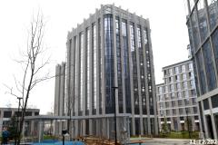 1 этап 2 очереди строительства ЖК Shagal - это комплекс из четырех корпусов переменной этажности и одного одноэтажного корпуса с коммерческими помещениями. Этап находится на первой линии набережной затона Новинки, поэтому двор комплекса не имеет ограждения по периметру.