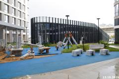 В конструкции наружных стен зданий применяется система вентилируемого фасада. В качестве основного облицовочного материала комплекса используются панели из стеклофибробетона (СФБ) светлых тонов с вкраплением натуральной каменной крошки, частично рустованные. Панели из стеклофибробетона – гладкие. Здания преимущественно выполнены в светлых тонах, стемалит в витражных системах и металлические ограждения на кровлях выполнены частично темными тонами. В отделке деталей, поясков и межоконных панелей, использованы акценты с различными фактурами из стеклофибробетона и стемалита.