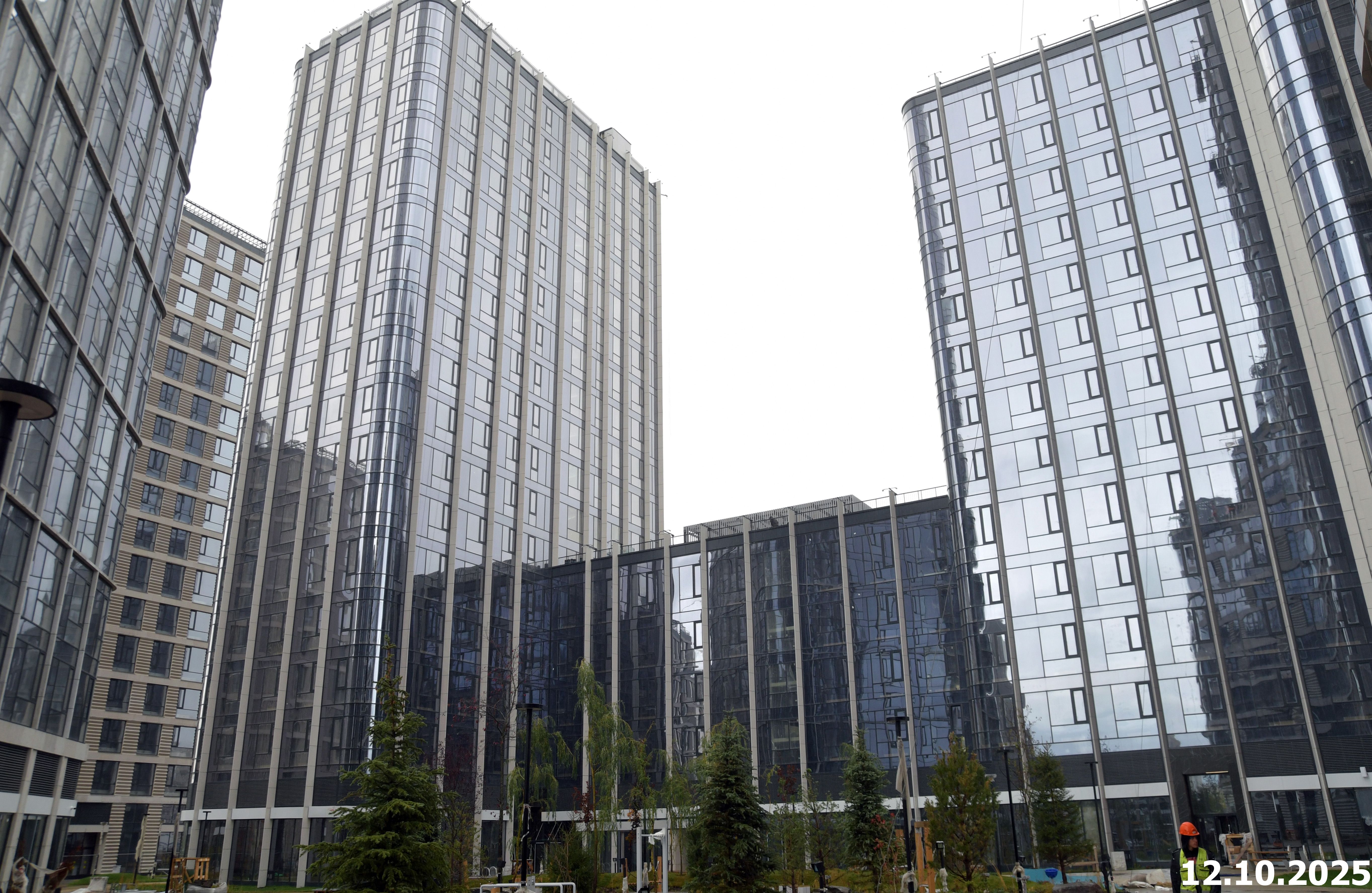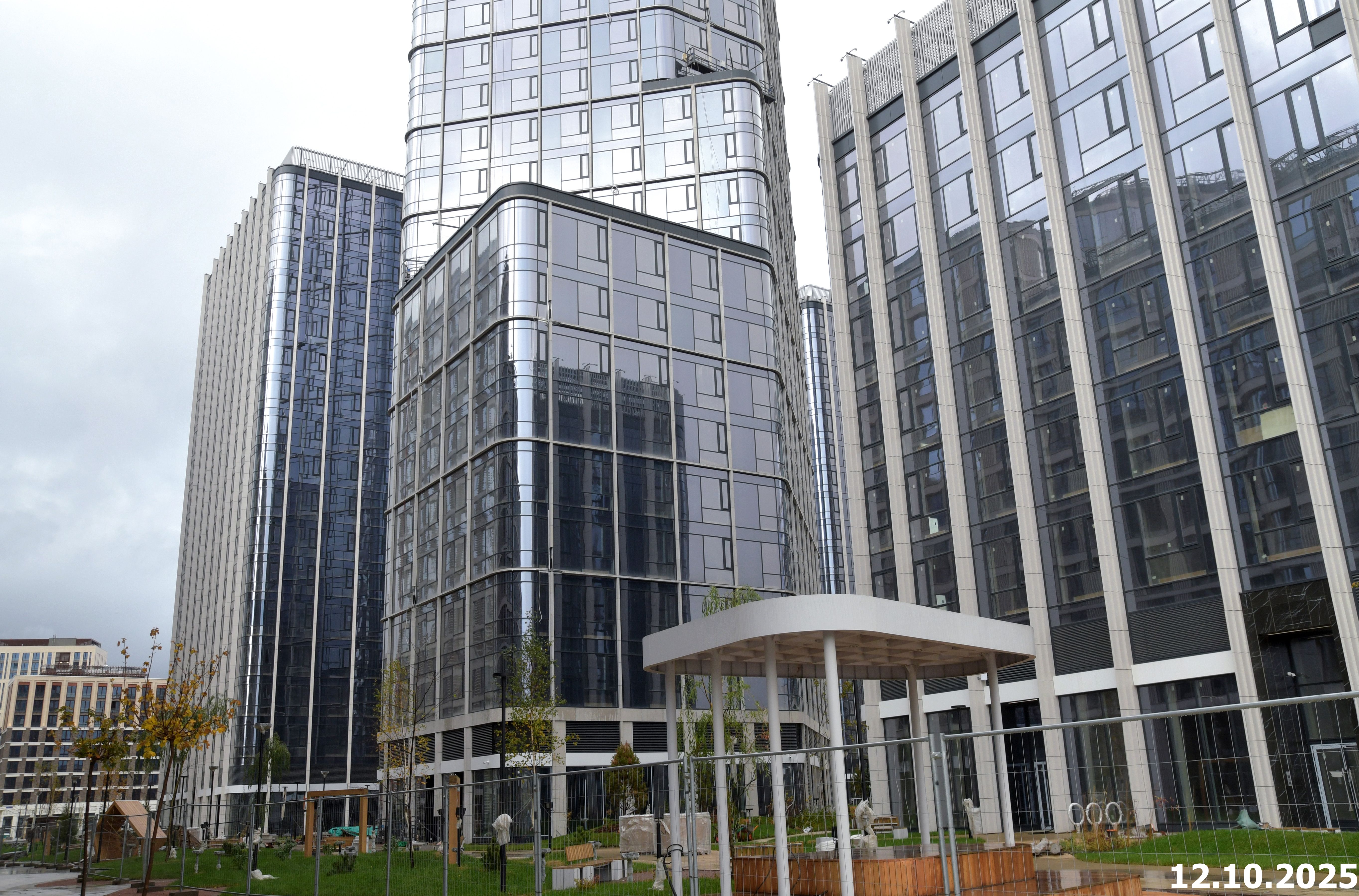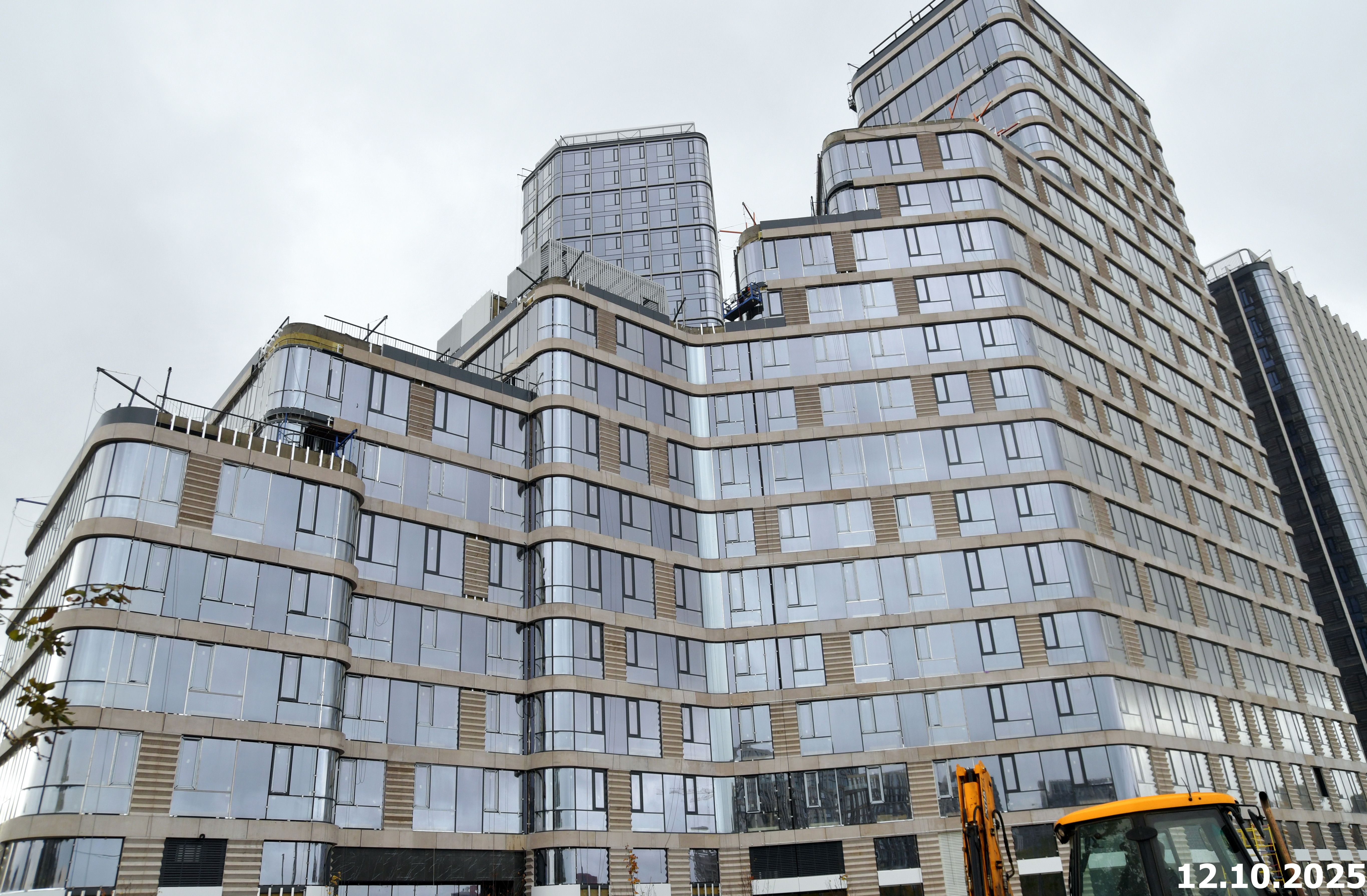 1 этап 2 очереди строительства ЖК Shagal - это комплекс из четырех корпусов переменной этажности и одного одноэтажного корпуса с коммерческими помещениями. Этап находится на первой линии набережной затона Новинки, поэтому двор комплекса не имеет ограждения по периметру.